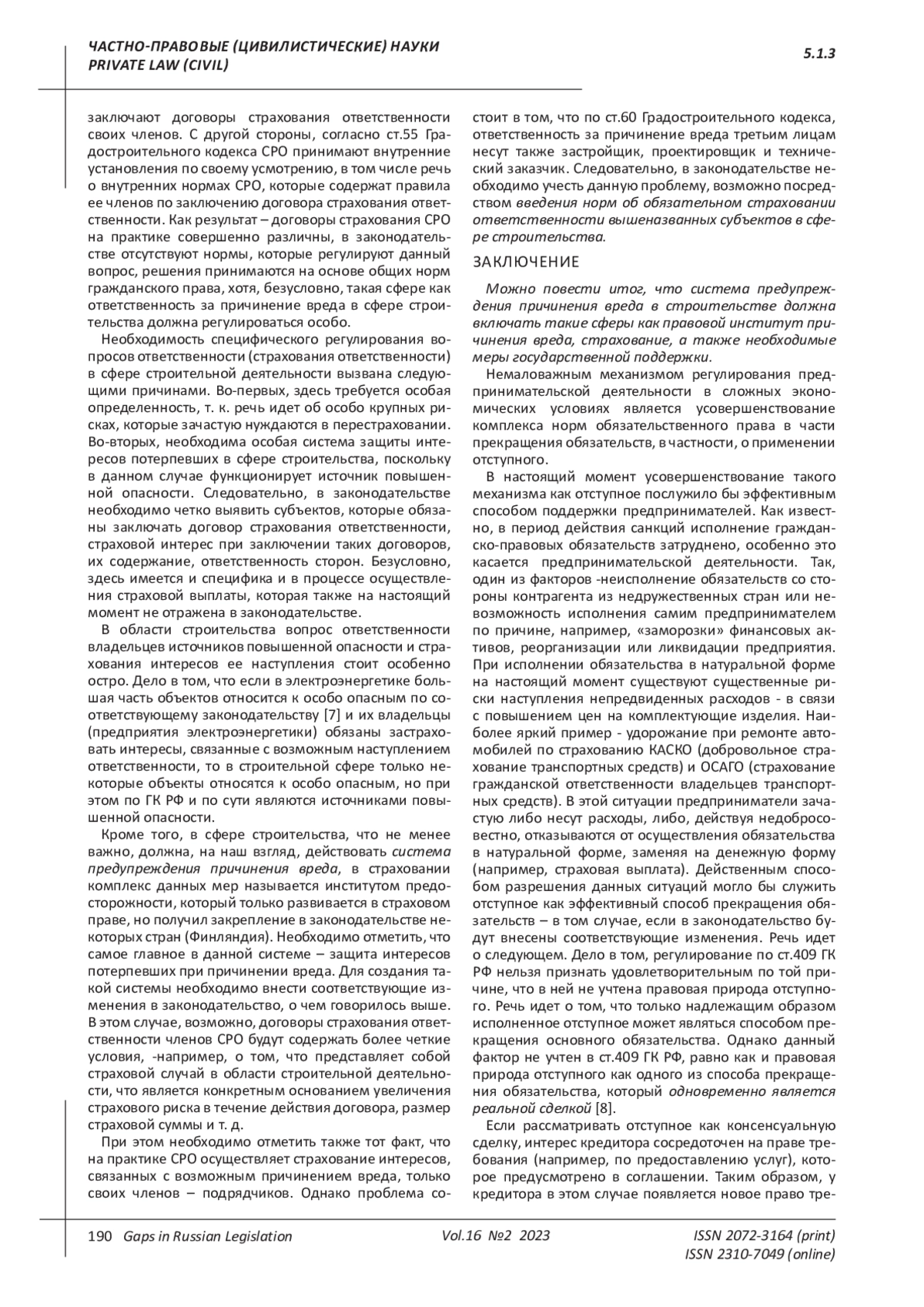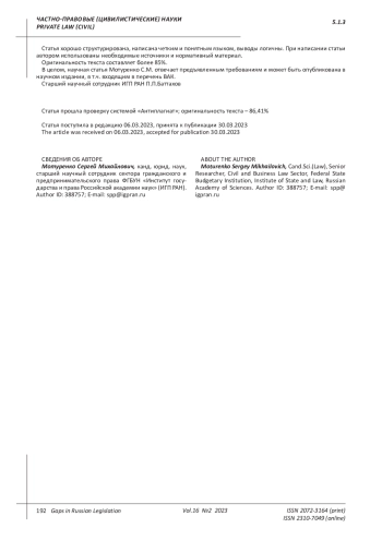 8. Овчинникова Ю.С. Отступное как способ прекращения обязательства: новые тенденции // Государство и право. 2022. №9. С.167-173. EDN: QJGYDH