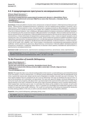 В данной работе описана очень актуальная на данный момент и действительно большая проблема - преступность несовершеннолетних и связанные с ней как теоретические вопросы и аспекты, так и практические. Рассказывается о том, что преступность несовершеннолетних обуславливает как развитие всей преступности в целом на несколько лет вперёд, так и работу законодательства по борьбе с преступностью как на данный момент, так и в будущем. Детерминируются основные актуальные проблемы являющиеся составляющими для указанного вопроса. Обуславливаются пути борьбы с данным видом преступности, а также возможности её устранения. В данной работе рассказывается об опасностях преступности несовершеннолетних, а также об итогах её процветания, рассказывается о том, к чему она может привести как на социальном, так и на государственном уровне в целом. Также отдельное внимание в работе отведено путям зарождения преступности несовершеннолетних и её обуславливающим детерминантам, которые из года в год расширяют свой круг. Говорится об объемности данной проблемы на данный момент, а также актуальности как её самой, так и борьбы с ней. Стоит вопрос о полноценном и многогранном регулировании данной проблемы путем привлечения различных общественных институтов. В данной работе детерминируются конкретные тенденции и проблемы свойственные на данном этапе времени молодёжной преступности и преступности несовершеннолетних.