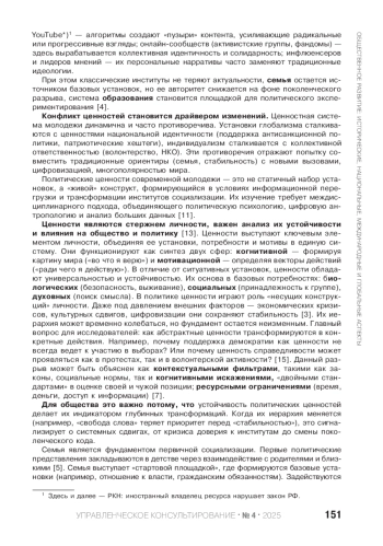 16. Разов П.В., Скворцов Н. Г. Молодежные общественные организации в региональном социуме как ресурс консолидации российского общества // Гуманитарий Юга России. 2023. Т. 12, № 1. С. 26-38.
