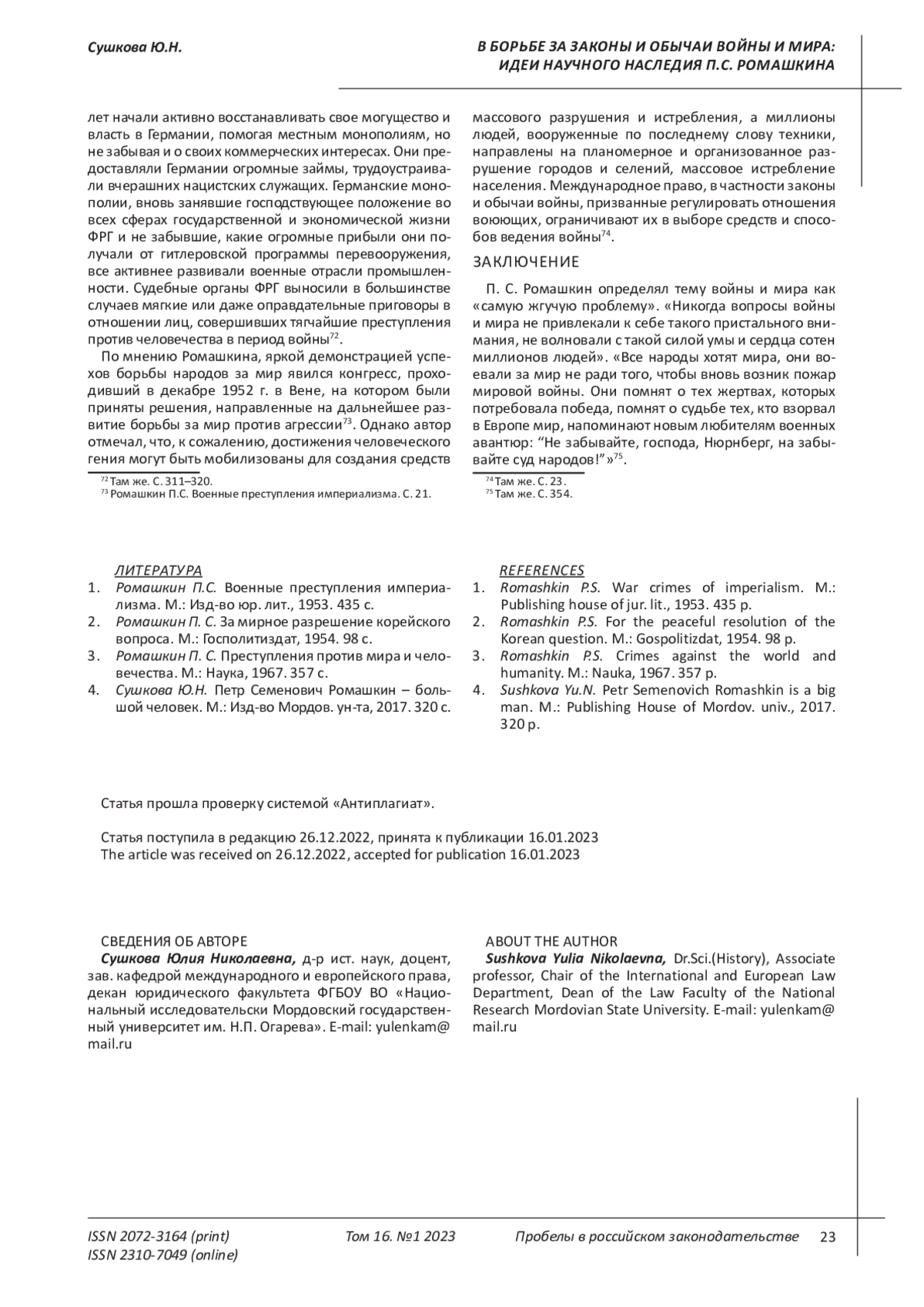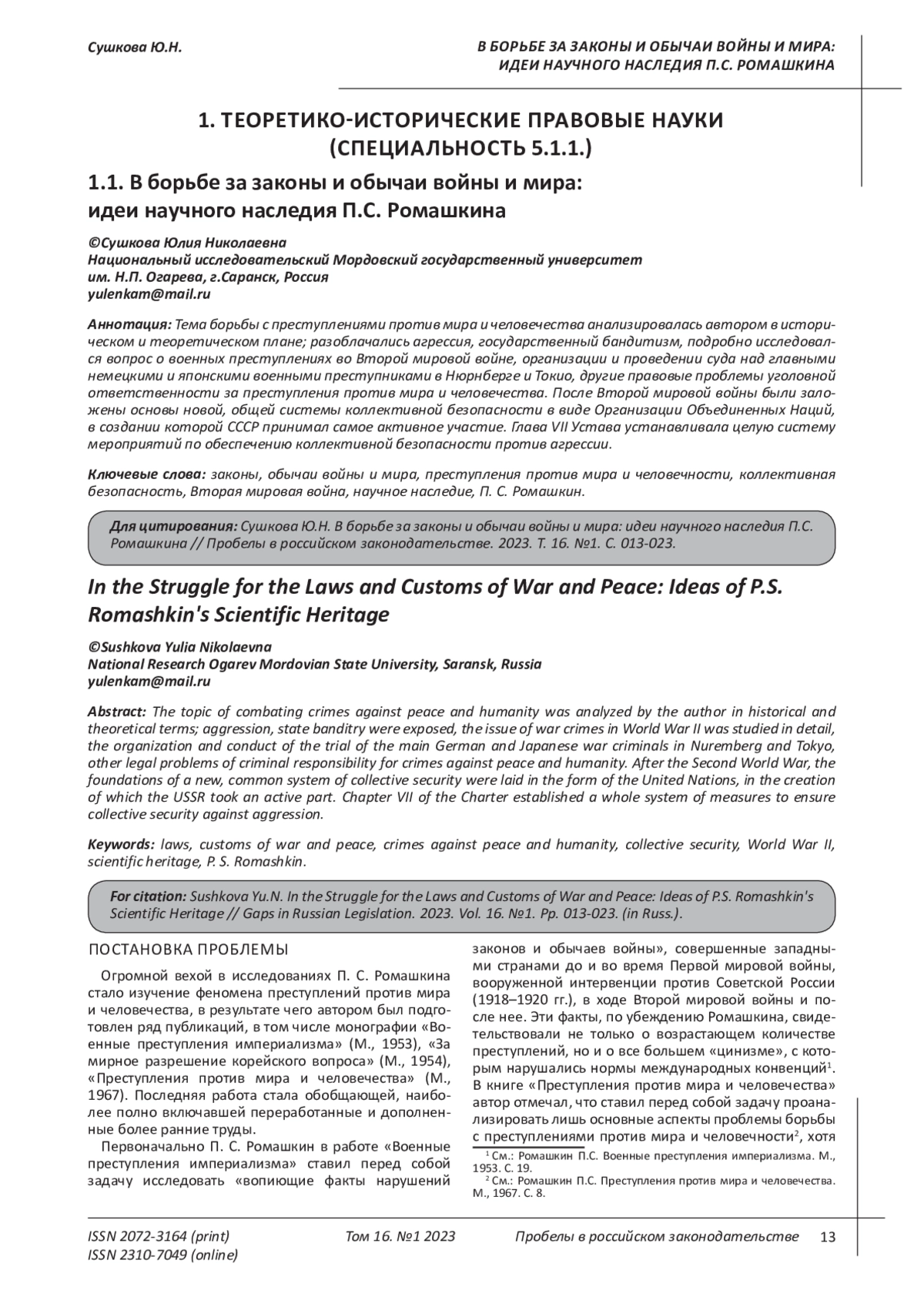 Romashkin P.S. Crimes against the world and humanity. M.: Nauka, 1967. 357 p.