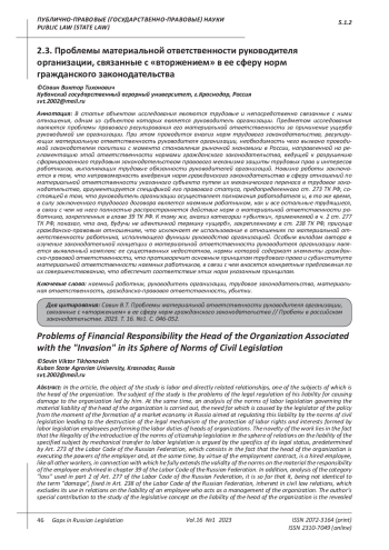 8. Савин В. Т. Становление и развитие трудового законодательства, регулирующего материальную ответственность руководителя организации // Пробелы в российском законодательстве. 2022. № 5. С. 239. EDN: IGIISR