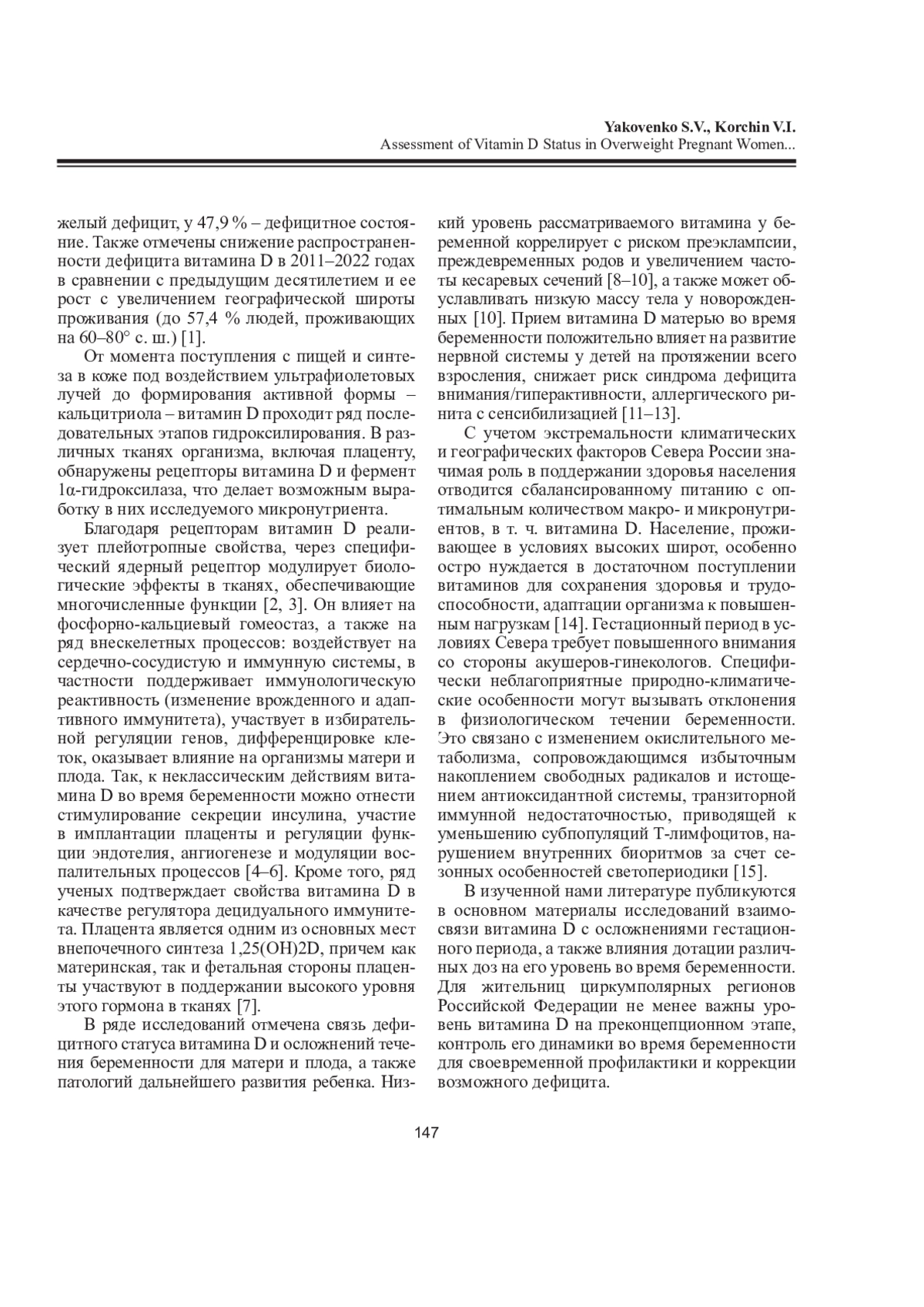 10. Kabuyanga R.K., Tugirimana P.L., Sifa B., Balezi M., Dikete M.E., Mitangala P.N., Elongi J.P.M., Kinenkinda X.K., Kakoma J.-B.S.Z. Effect of Early Vitamin D Supplementation on the Incidence of Preeclampsia in Primigravid Women: A Randomised Clinical Trial in Eastern Democratic Republic of the Congo // BMC Pregnancy Childbirth. 2024. Vol. 24, No 1. Art. No 107. DOI: 10.1186/s12884-024-06277-6 EDN: NHSENF