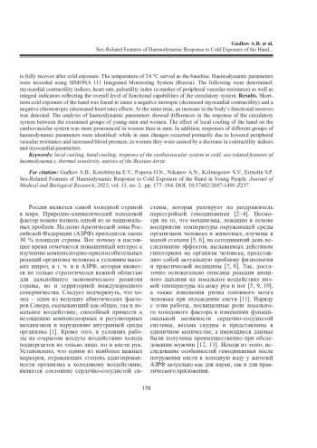 7. Аверьянова И.В. Ответные реакции кардиогемодинамики при локальном холодовом воздействии у жителей приморской и континентальной зон Магаданской области // Экология человека. 2021. No 10. С. 29-36. DOI: 10.33396/1728-0869-2021-10-29-36 EDN: TRHBKE