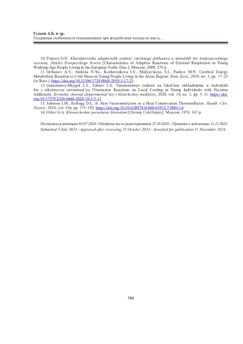 13. Johnson J.M., Kellogg D.L. Jr. Skin Vasoconstriction as a Heat Conservation Thermoeffector // Handb. Clin. Neurol. 2018. Vo l. 156. P. 175-192. DOI: 10.1016/B978-0-444-63912-7.00011-4