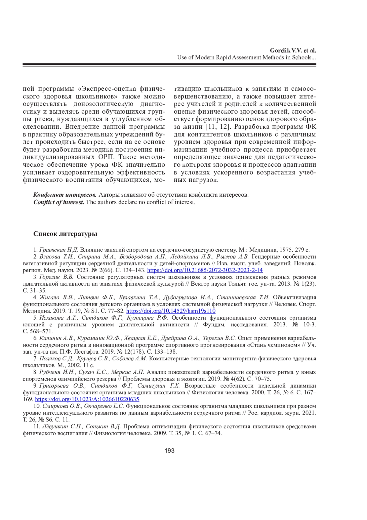 12. Сапожникова Е.Н., Шлык Н.И., Шумихина И.И., Кириллова Т.Г. Типологические особенности вариабельности сердечного ритма у школьников 7-11 лет в покое и при занятиях спортом // Вестн. Удмурт. унта. Сер.: Биология. Науки о Земле. 2012. Вып. 2. С. 79-88.