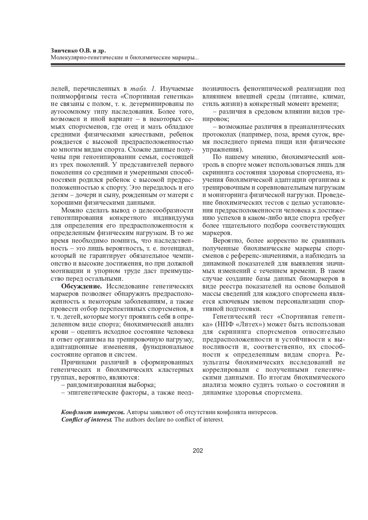 Цель работы - изучить взаимосвязь между биохимическими параметрами и полиморфными вариантами генов, анализируемыми при оценке предрасположенности спортсмена к различным специализациям.
