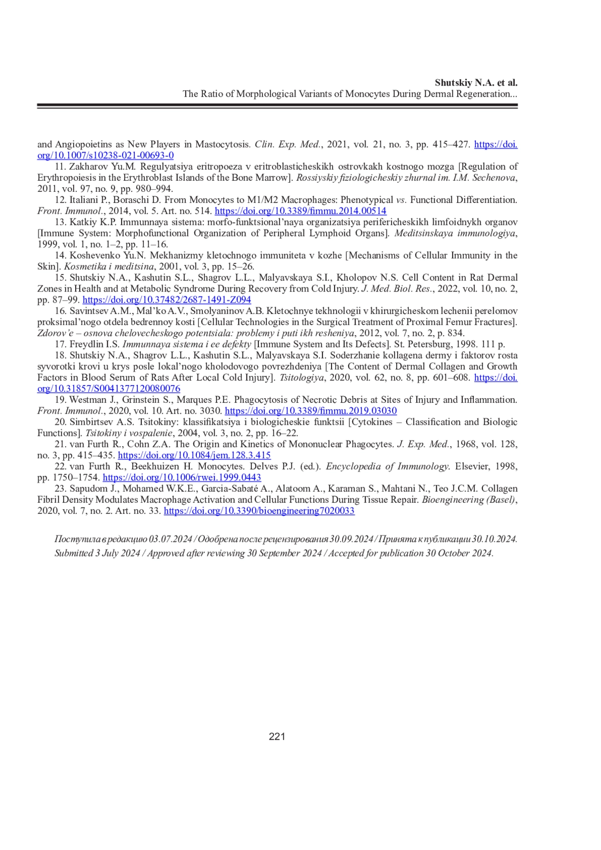 22. van Furth R., Beekhuizen H. Monocytes // Encyclopedia of Immunology. / ed. by P.J. Delves. Elsevier, 1998. P. 1750-1754. DOI: 10.1006/rwei.1999.0443