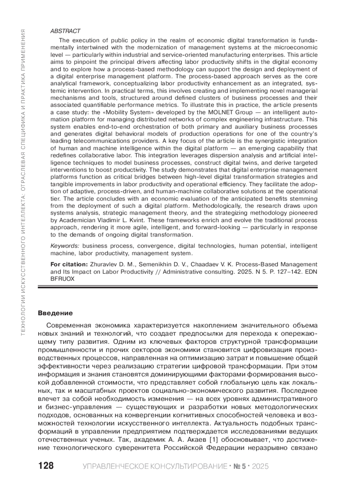 14. Тяпухин А. П., Старков Д. А. Процессный подход к цифровому управлению цепями ценности и поставок // Управленческое консультирование. 2025. № 2. С. 75-92. https://doi.org/10.22394/17261139-2025-2-75-92.