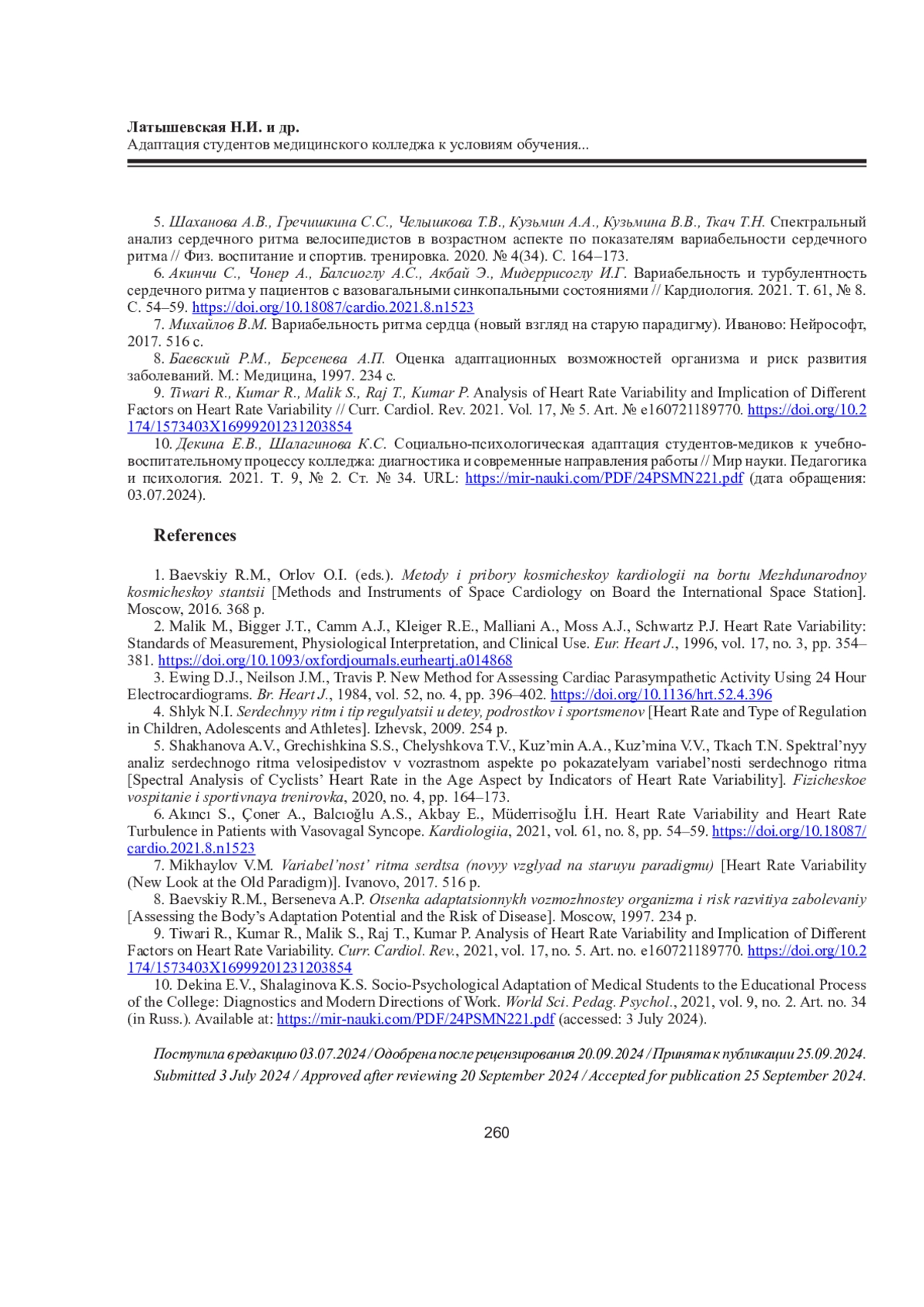 10. Декина Е.В., Шалагинова К.С. Социально-психологическая адаптация студентов-медиков к учебновоспитательному процессу колледжа: диагностика и современные направления работы // Мир науки. Педагогика и психология. 2021. Т. 9, No 2. Ст. No 34. URL: https://mir-nauki.com/PDF/24PSMN221.pdf (дата обращения: 03.07.2024).