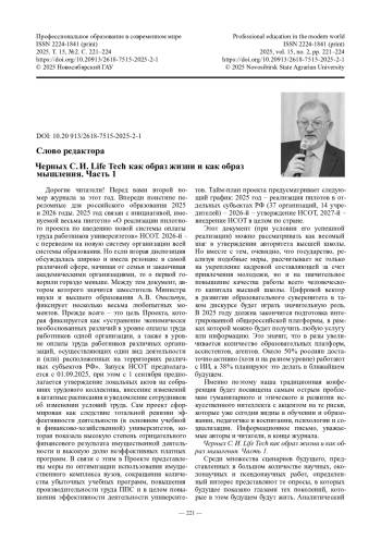 Введение. Быстротечное развитие и широкое распространение цифровых технологий, наблюдаемое в последнее время, приводит к кардинальным переменам в большинстве сфер жизни общества, в том числе и в системе образования.