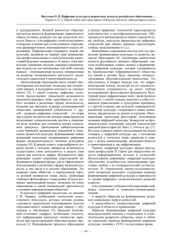 Что касается формирующейся инновационной модели образования в контексте цифровых техно‑ логий, то она непосредственно связана с качественным изменением ценностных аспектов российского образования.