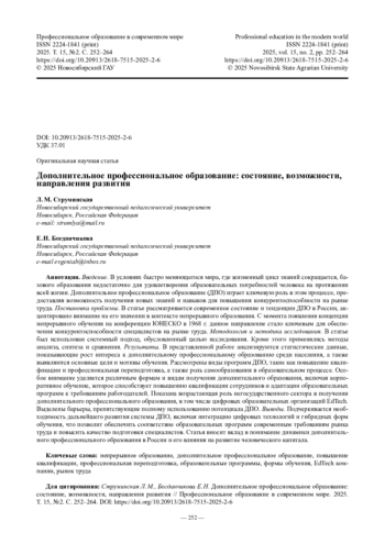 Введение. В условиях быстро меняющегося мира, где жизненный цикл знаний сокращается, базового образования недостаточно для удовлетворения образовательных потребностей человека на протяжении всей жизни. Дополнительное профессиональное образование (ДПО) играет ключевую роль в этом процессе, предоставляя возможность получения новых знаний и навыков для повышения конкурентоспособности на рынке труда.