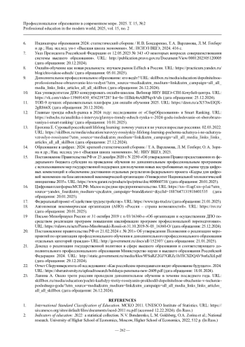 1. Международная стандартная классификация образования. MCKO 2011. Институт статистики ЮНЕСКО. Режим доступа: https://uis.unesco.org/sites/default/files/documents/isced-2011-ru.pdf (дата обращения: 22.12.2024).