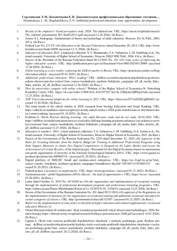 13. Ерохина Е. Суровый российский lifelong learning: почему учатся и не учатся взрослые россияне. 02.03.2022. URL: https://skillbox.ru/media/education/surovyy-rossiyskiy-lifelong-learning-pochemu-uchatsya-i-ne-uchatsyavzroslye-rossiyane/?utm_source=media&utm_medium=link&utm_campaign=all_all_media_links_links_articles_all_all_skillbox (дата обращения: 27.12.2024).