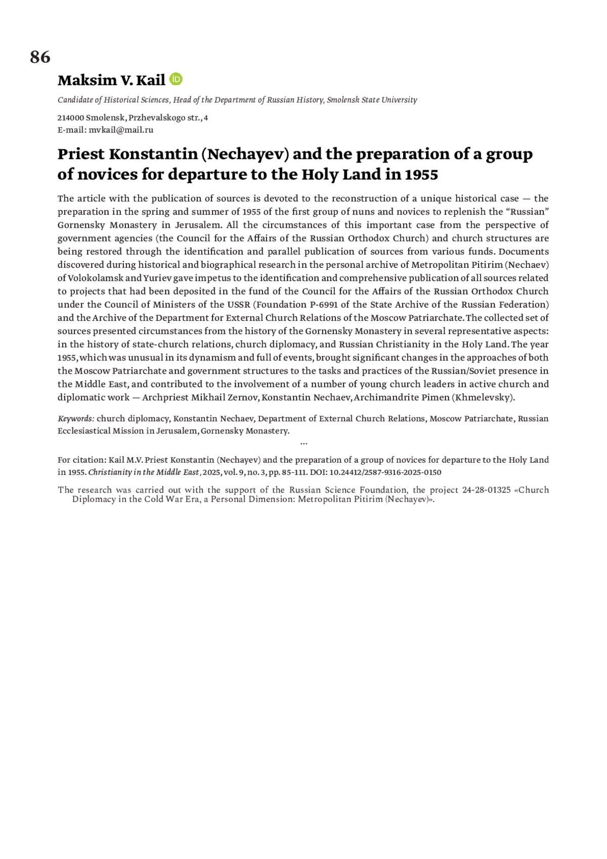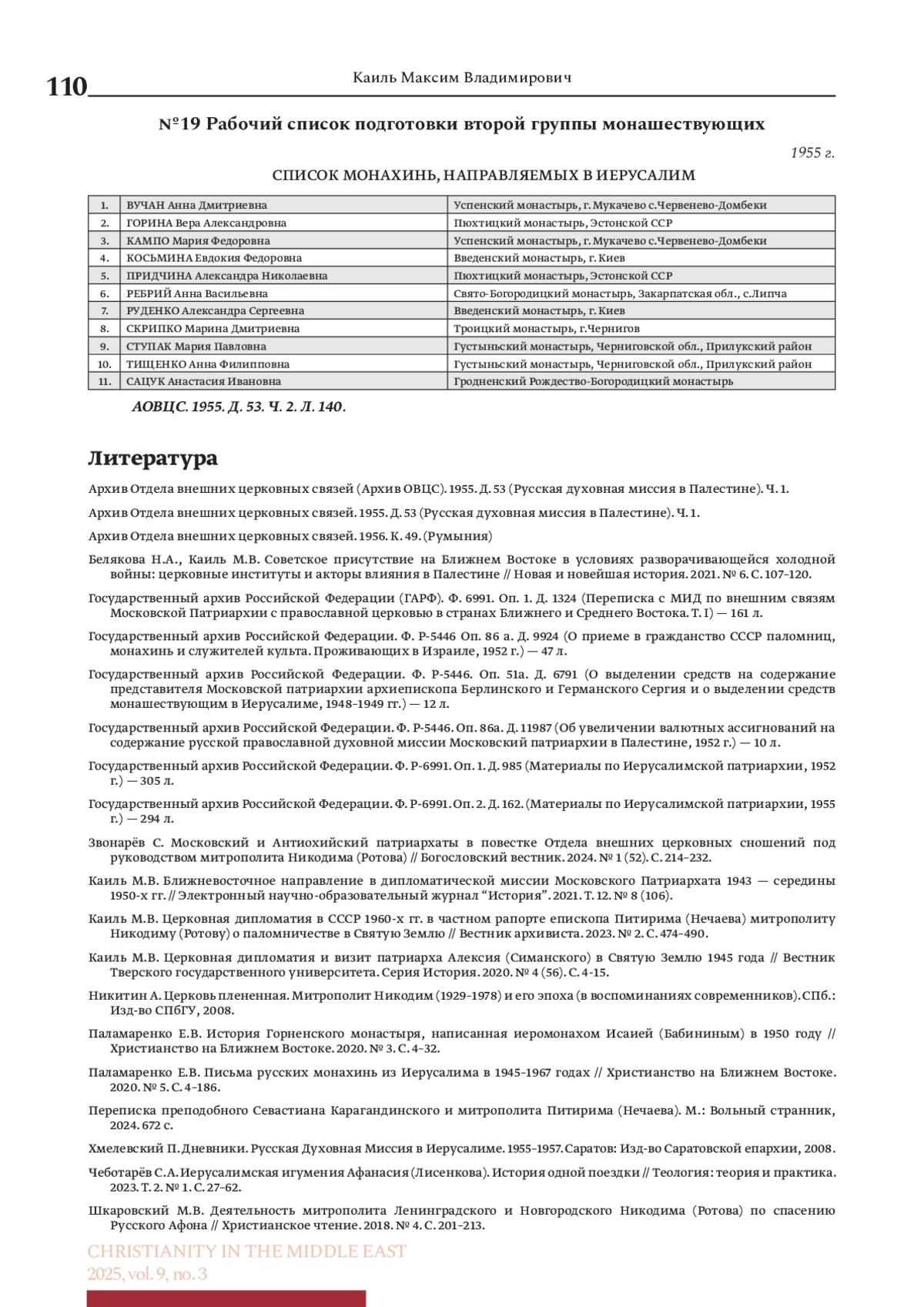 12. Каиль М.В. Ближневосточное направление в дипломатической миссии Московского Патриархата 1943 - середины 1950-х гг. // Электронный научно-образовательный журнал “История”. 2021. Т. 12. № 8 (106).