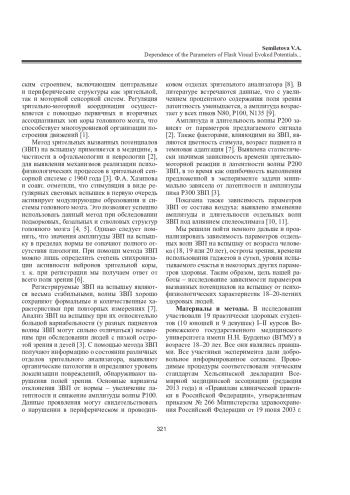 Цель работы - изучение зависимости параметров зрительных вызванных потенциалов (ЗВП) на вспышку от психофизиологических характеристик 18-20-летних здоровых людей.