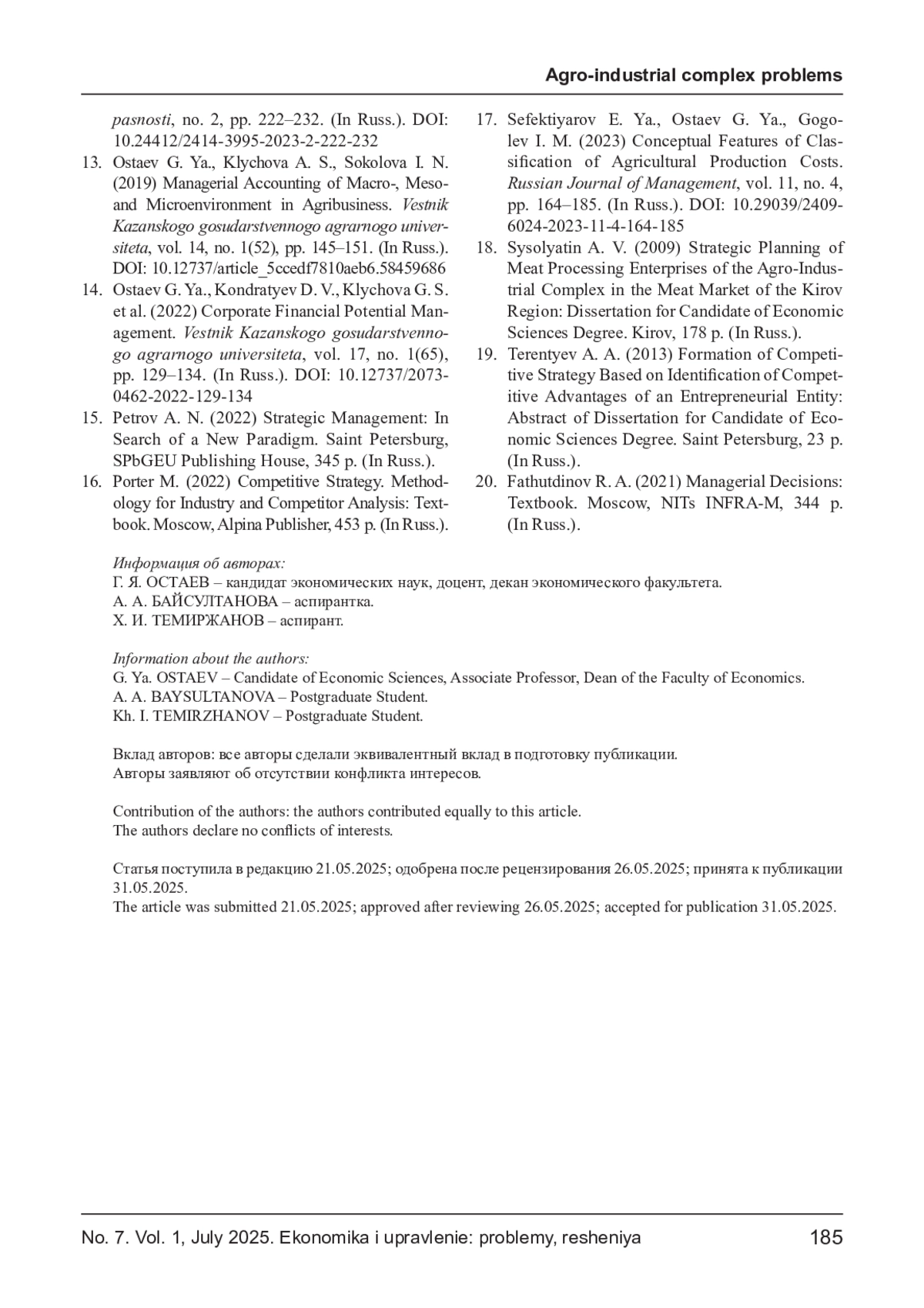 17. Сефектияров Е. Я., Остаев Г. Я., Гоголев И. М. Концептуальные особенности классификации затрат сельскохозяйственного производства // Russian Journal of Management. 2023. Т. 11, № 4. С. 164-185. DOI: 10.29039/2409-6024-2023-11-4-164-185 EDN: WXDBLO