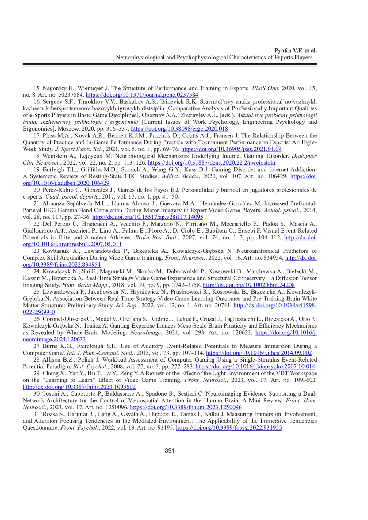 32. Irak M., Soylu C., Sakman Ö.K., Turan G. ERP Correlates of Working Memory Load in Excessive Video Game Players // Game User Experience and Player-Centered Design / ed. by B. Bostan. Cham: Springer, 2020. P. 3-20.