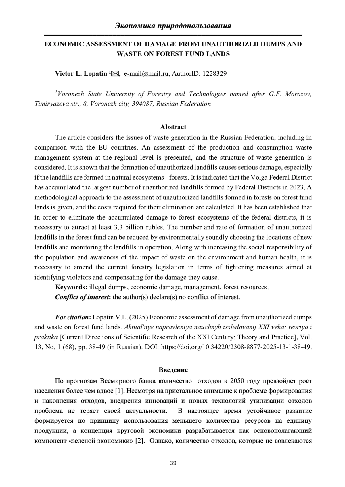 В статье рассмотрены вопросы образования отходов в Российской Федерации, в том числе по сравнению со странами Евросоюза. Представлена оценка системы обращения с отходами производства и потребления на уровне регионов страны, а также рассмотрена структура образования отходов. Показано, что образование несанкционированных свалок наносит серьезный ущерб, особенно если свалки образуются в природных экосистемах- лесах. Указано, что в Приволжский федеральном округе накоплено наибольшее количество несанкционированных свалок, образованных в разрезе Федеральных округов в 2023 году. Приведен методический подход к оценке несанкционированных свалок, образующихся в лесах на землях лесного фонда, и выполнен расчет затрат необходимых для их ликвидации. Установлено, что для ликвидации накопленного ущерба лесным экосистемам федеральных округов необходимо привлечение до не менее 3,3 млрд. руб. Снизить количество и скорость образования несанкционированных свалок в лесном фонде можно путем экологически обоснованного выбора мест размещения новых полигонов и мониторинга эксплуатируемых полигонов. Наряду повышением социальной ответственности населения и осведомленности о влиянии отходов на окружающую среду и здоровье человека, необходимо внесение изменений в действующее лесное законодательство, в части ужесточения мер направленных на выявление нарушителей и компенсации наносимого ими ущерба.