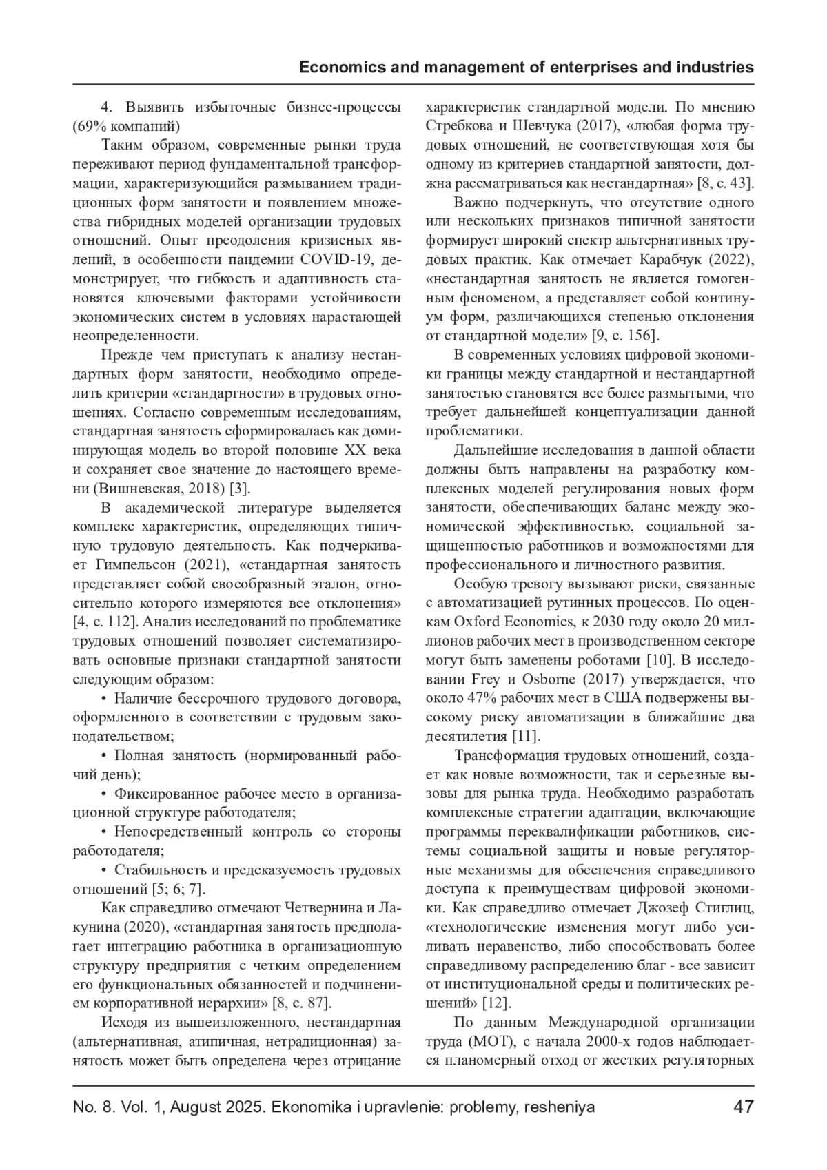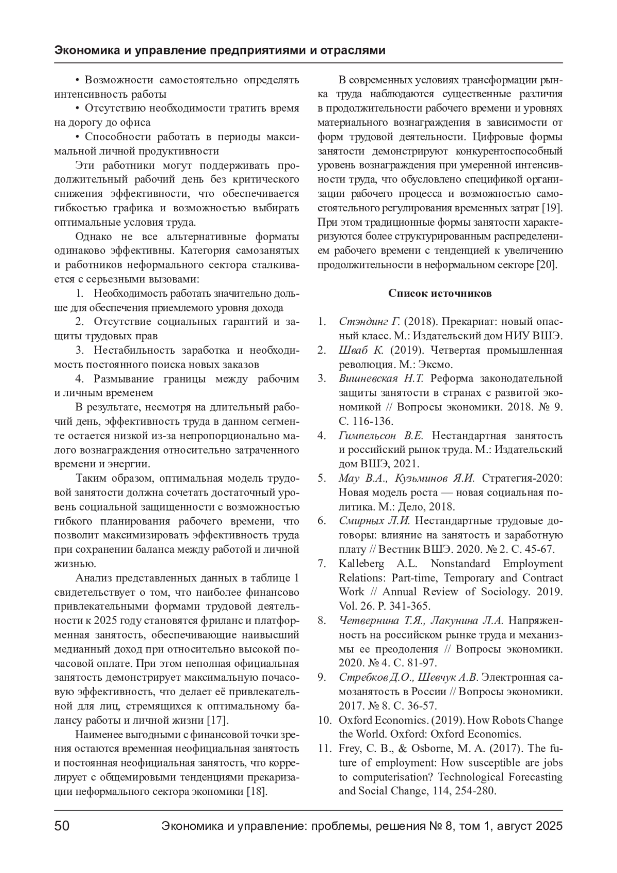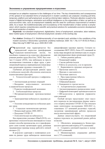 Статья: МНОГОАСПЕКТНОСТЬ НЕСТАНДАРТНОЙ ТРУДОВОЙ ДЕЯТЕЛЬНОСТИ В УСЛОВИЯХ СОВРЕМЕННОЙ ЭКОНОМИКИ (2025)
