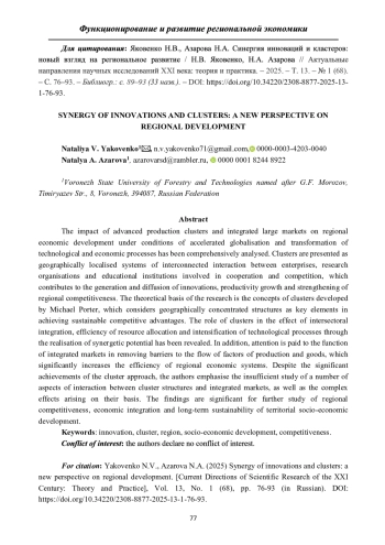 5. Веселовский М. Я. Развитие инновационно-территориальных кластеров как формы организации региональной экономики / М. Я. Веселовский, Т. В. Погодина, И. И. Чуева // Вестник Самарского университета. Экономика и управление. 2021;12 (4):15-26. DOI: 10.18287/2542-0461-2021-12-4-15-26 EDN: CWXLBX