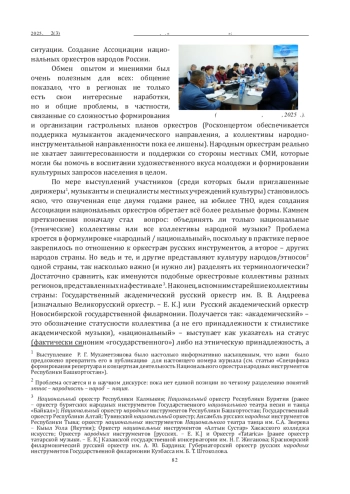 В статье освещаются актуальные вопросы, встающие сегодня передколлективом Национального оркестра народных инструментов Республики Башкортостан(НОНИ РБ). Это вопросы создания и пополнения репертуара, ведения концертнойдеятельности и творческих «обменных» мероприятий. Статья дополняется иллюстрациями– все фотографии взяты с официальных страниц НОНИ РБ и Башкирской государственнойфилармонии им. Х. Ахметова (БГФ) во ВК (https://vk. com/noni_rb; https://vk. com/bashgf? from=search)