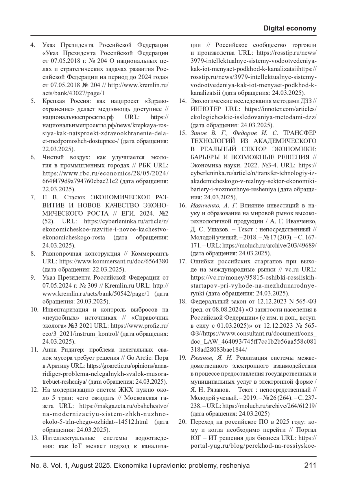 19. Рязанов, Я. Н. Реализация системы межведомственного электронного взаимодействия в процессе предоставления государственных и муниципальных услуг в электронной форме / Я. Н. Рязанов. - Текст: непосредственный // Молодой ученый. - 2019. - № 26 (264). - С. 237238. - URL: https://moluch.ru/archive/264/61219/(дата обращения: 24.03.2025). EDN: OFVECY