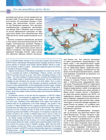 Современная геополитическая обстановка в Арктике, включая милитаризацию региона, выход Западного мира из совместных научных и экологических инициатив, противоречат изначальной концепции поддержания устойчивого развития и сотрудничества в Арктике.