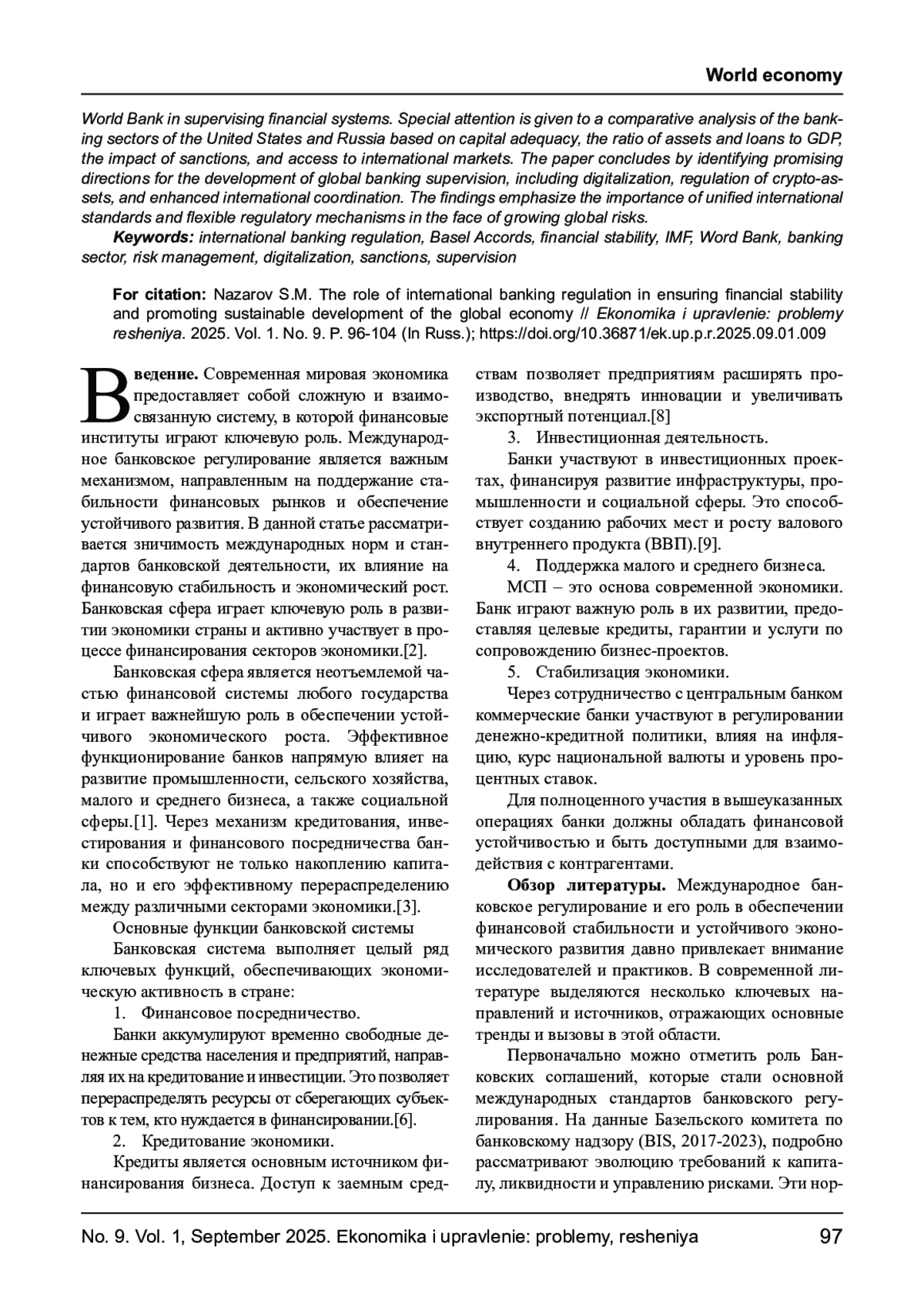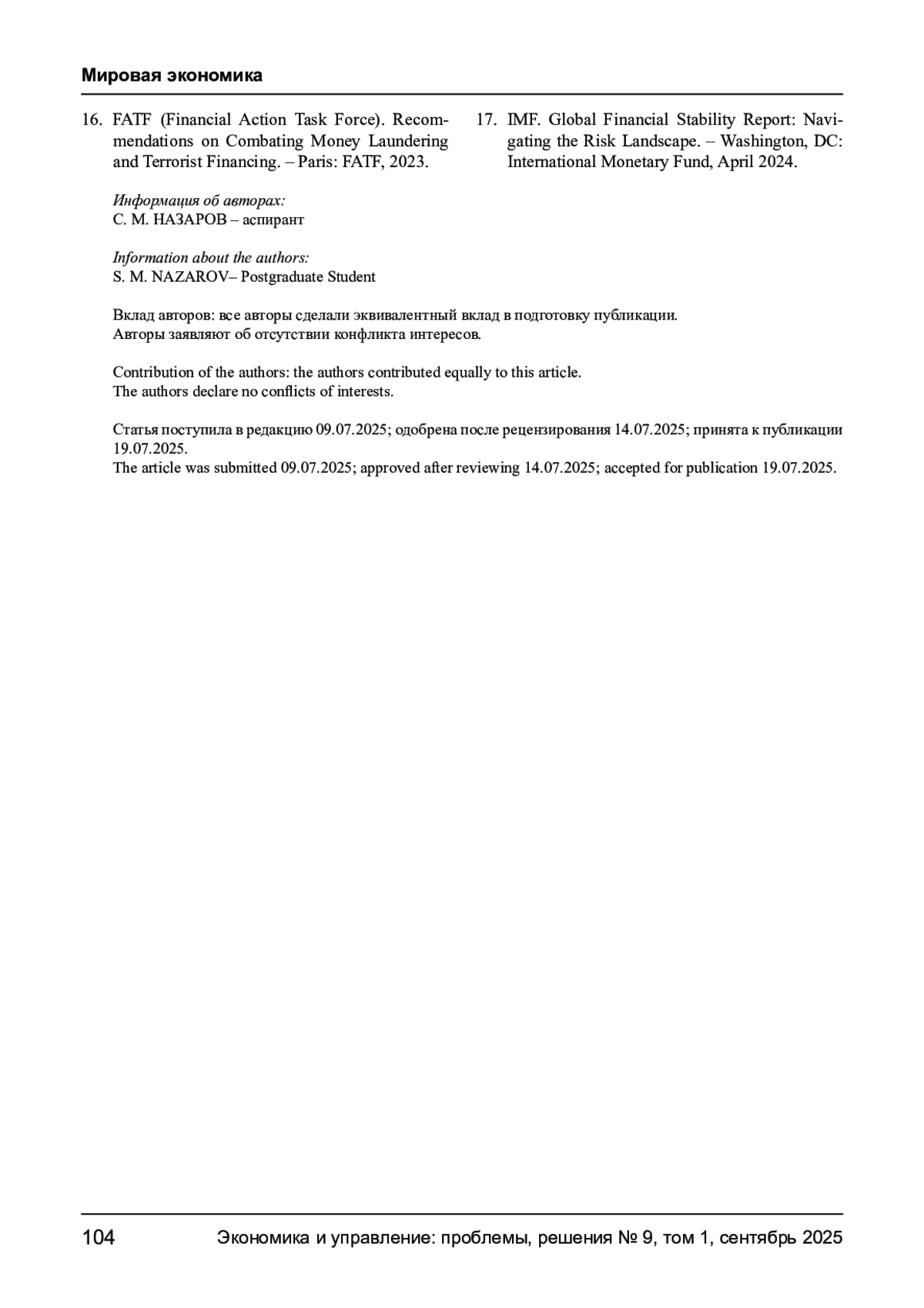 8. Кудрин, А.Л., Назаров, М.Ю. Финансовые риски и регуляторная политика в глобальном контексте // Эконмическая политика. - 2024. - №1. - С. 54-68.