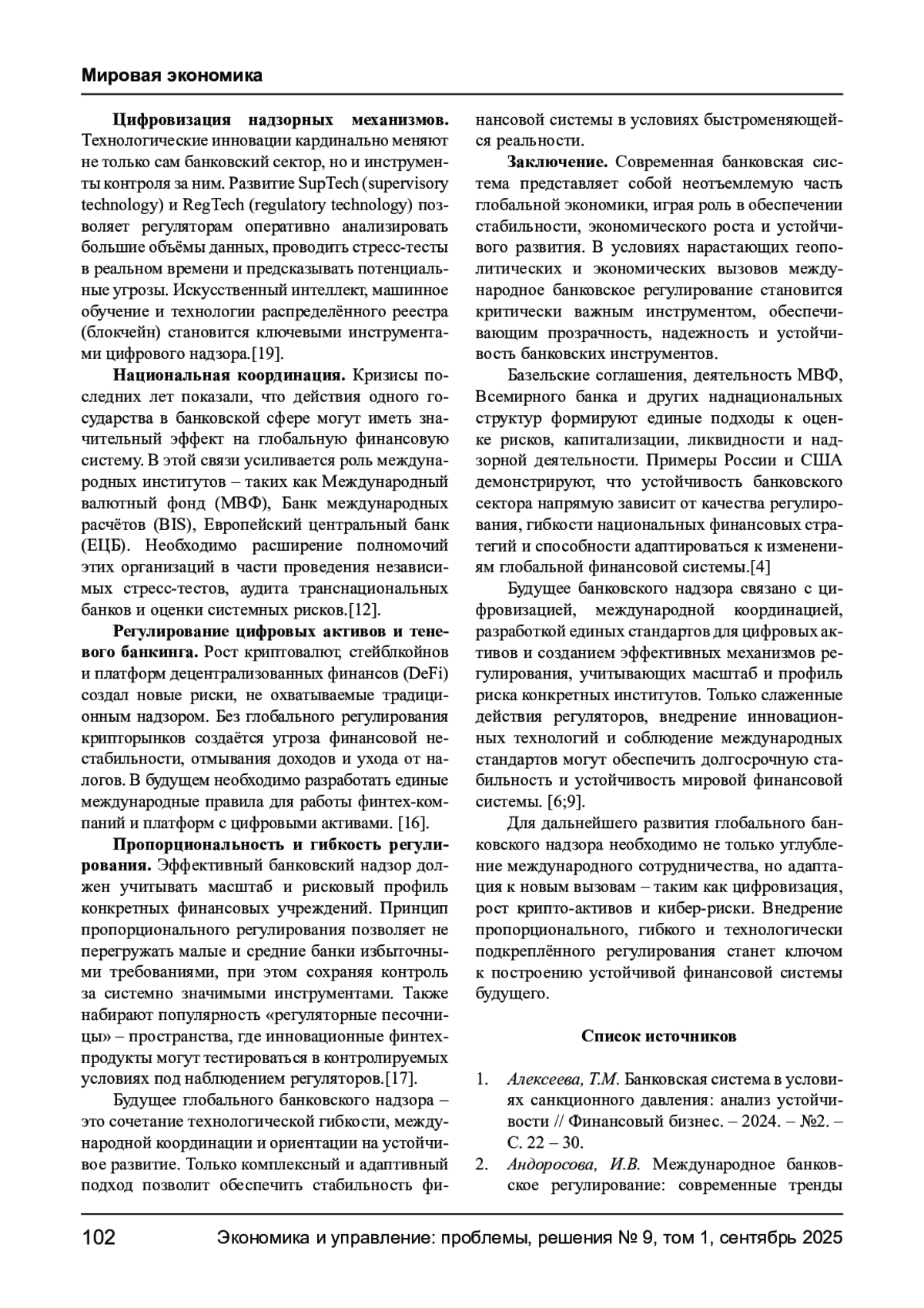 2. Андоросова, И.В. Международное банковское регулирование: современные тренды и вызовы // Вопросы экономики и права. - 2023. - №5. - С. 84 - 91.