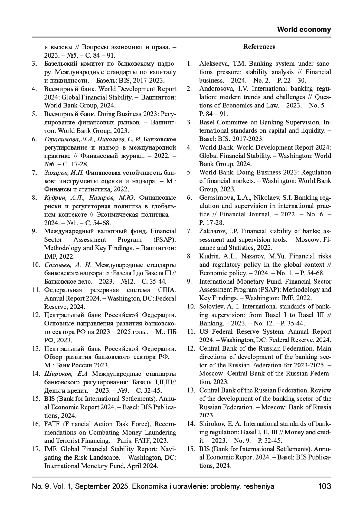 6. Герасимова, Л.А., Николаев, С. И. Банковское регулирование и надзор в международной практике // Финансовый журнал. - 2022. - №6. - С. 17-28.