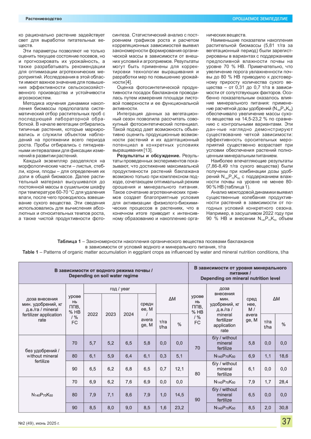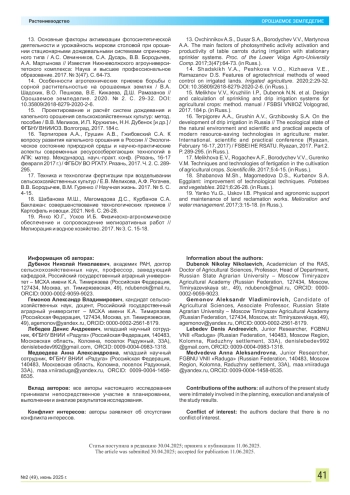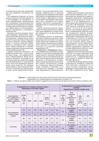 Ключевые фразы: баклажан, капельное орошение, накопление органического вещества, фотосинтетический потенциал, площадь листовой поверхности, тоннельные shelters, pre-irrigation humidity, yield укрытия, предполивная влажность, урожайность