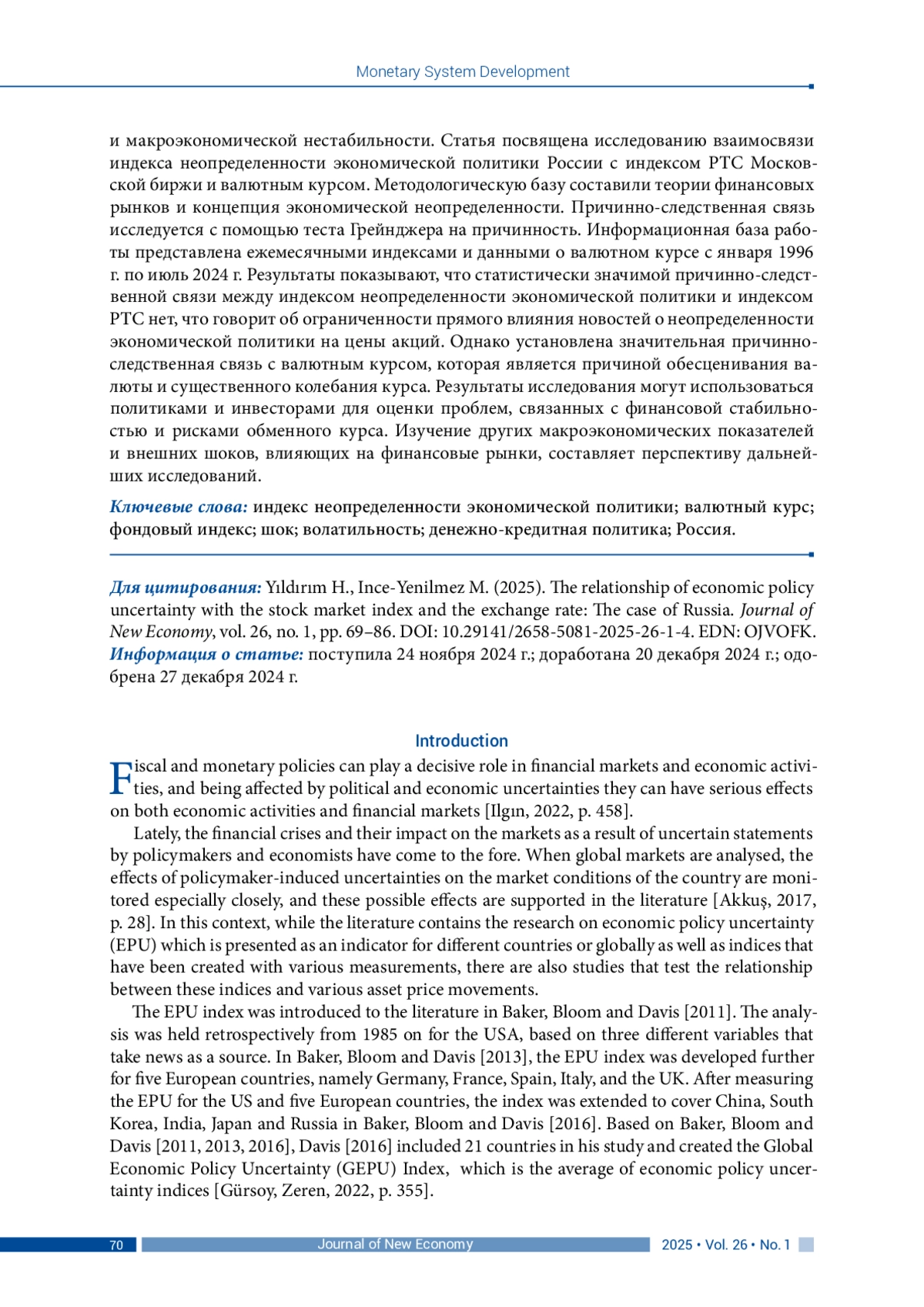 51. Sohag K., Gainetdinova A., Mariey O. (2022). The response of exchange rates to economic policy uncertainty: Evidence from Russia. Borsa Istanbul Review, vol. 22, issue 3, pp. 534-545. DOI: 10.1016/j.bir.2021.07.002 EDN: HHLFWM