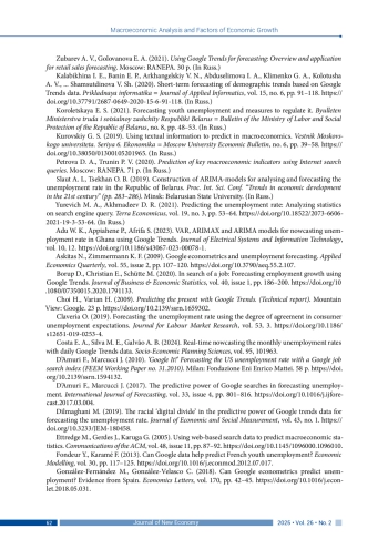 15. Claveria O. (2019). Forecasting the unemployment rate using the degree of agreement in consumer unemployment expectations. Journal for Labour Market Research, vol. 53, 3. DOI: 10.1186/s12651-019-0253-4