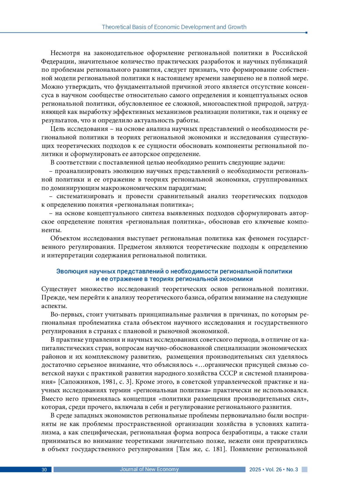 Исследование теоретических основ региональной политики приобретает особую актуальность в контексте современных глобальных вызовов, трансформирующих пространственную организацию экономики и общества. К их числу относятся глобализация и регионализация, экологические угрозы, демографические и технологические трансформации, усиление пространственной поляризации и периферийности. Для Российской Федерации, испытывающей специфические риски регионального развития (дезинтеграция, дивергенция, демографическое сжатие), а также для многих крупных стран мира, эти вызовы обусловливают критическую важность выработки новых эффективных механизмов и инструментов устойчивого социально-экономического развития регионов, адекватных новым геополитическим и геоэкономическим условиям функционирования.