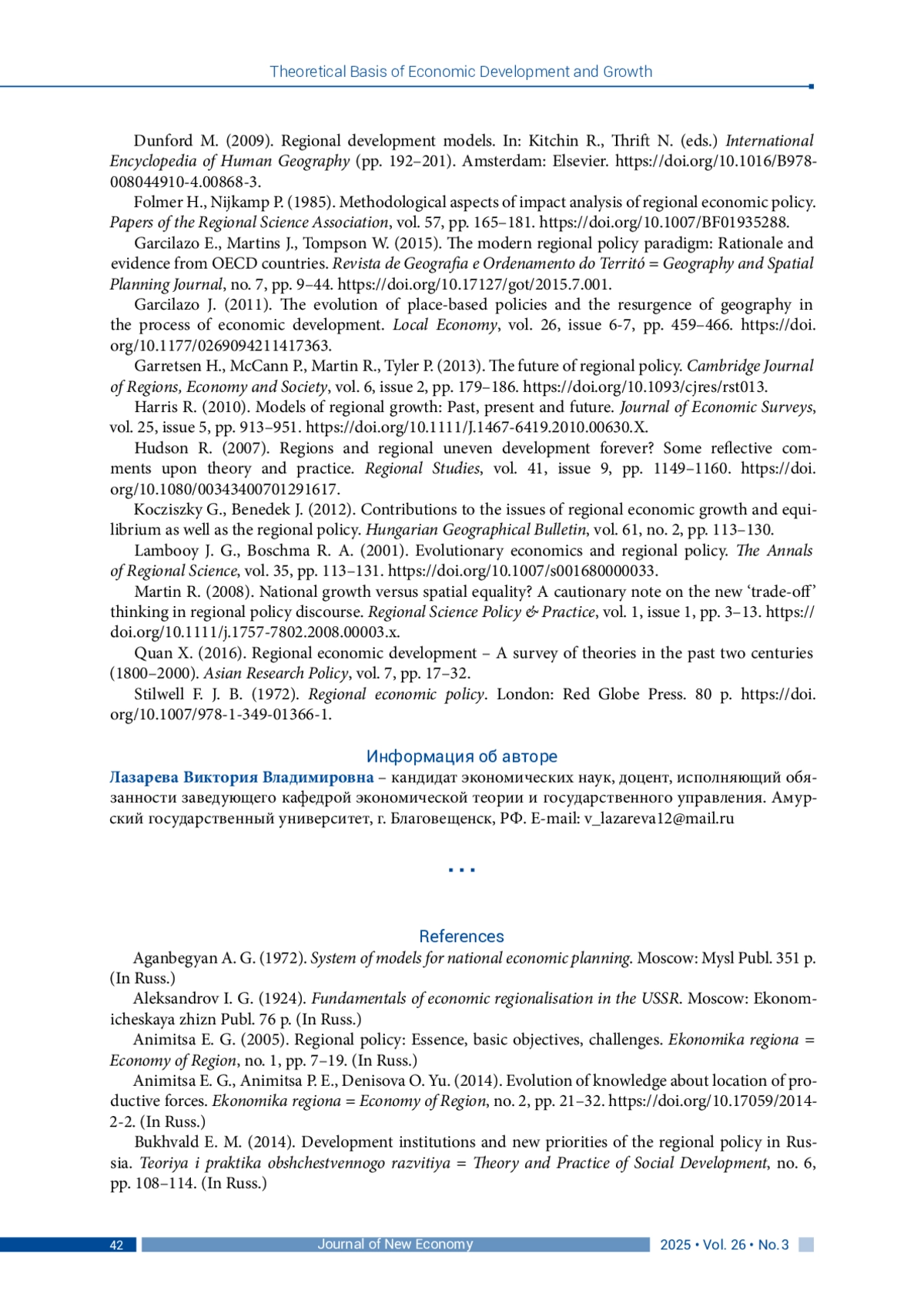 43. Harris R. (2010). Models of regional growth: Past, present and future. Journal of Economic Surveys, vol. 25, issue 5, pp. 913-951. DOI: 10.1111/J.1467-6419.2010.00630.X