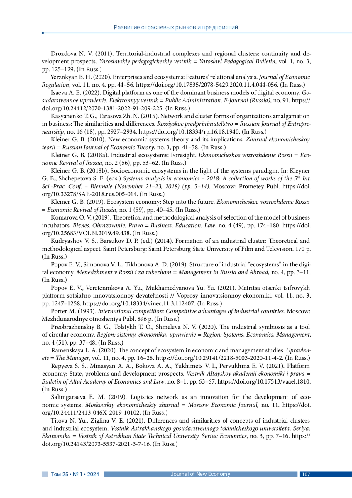 15. Клейнер Г. Б. (2018a). Промышленные экосистемы: взгляд в будущее // Экономическое возрождение России. № 2 (56). С. 53-62. EDN: XSEJRB