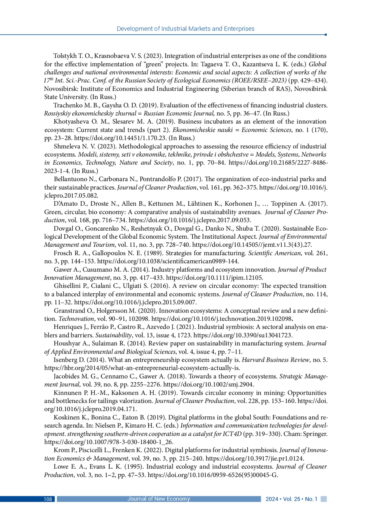 23. Преображенский Б. Г., Толстых Т. О., Шмелева Н. В. (2020). Промышленный симбиоз как инструмент циркулярной экономики // Регион: системы, экономика, управление. № 4 (51). С. 37-48. EDN: GPXUMW