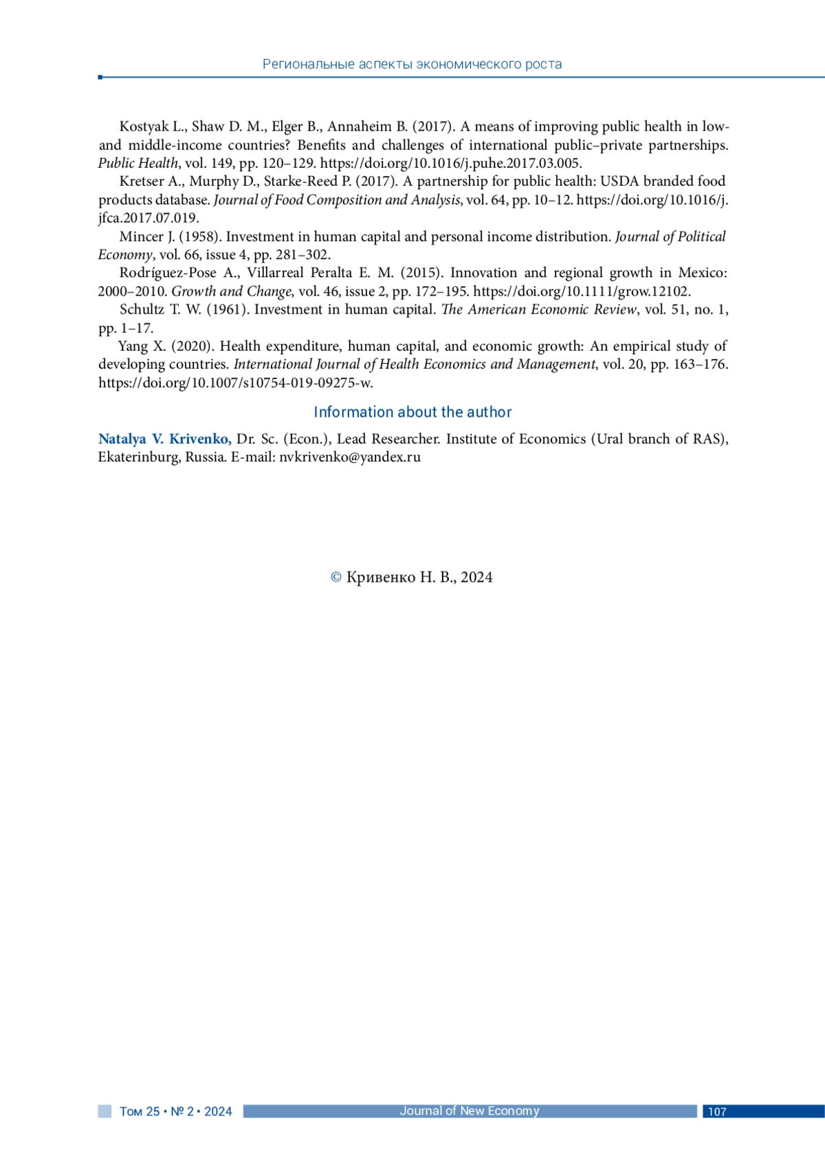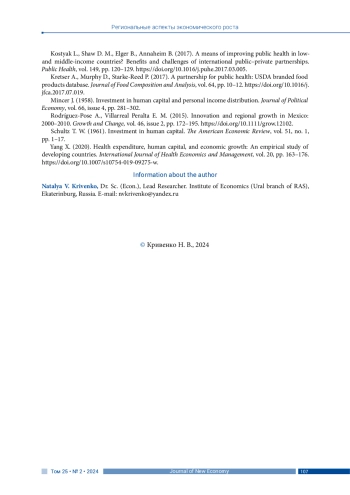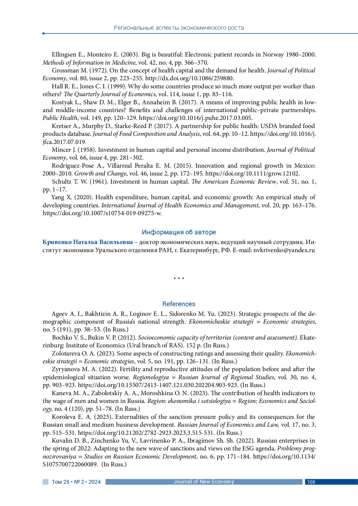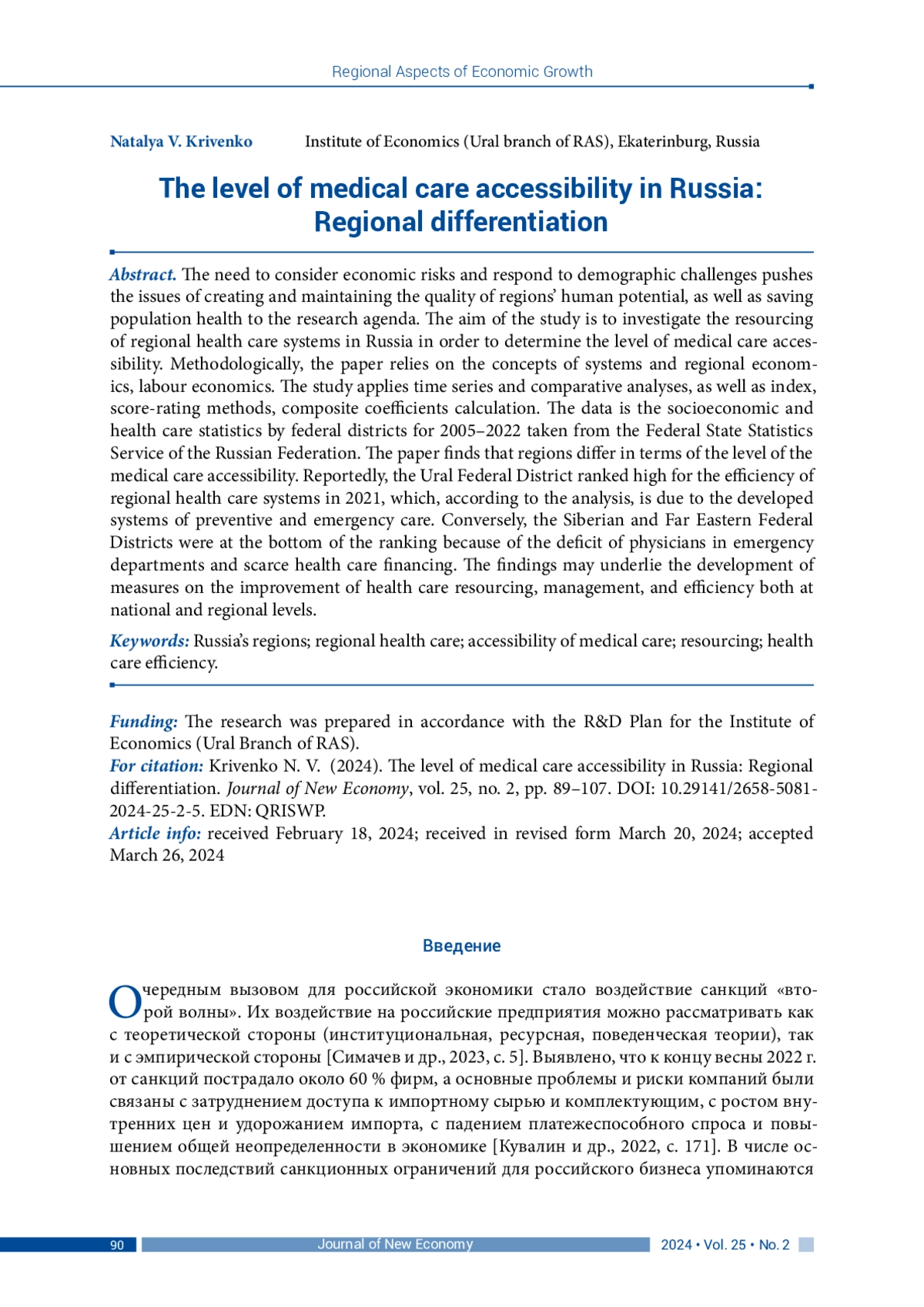КРИВЕНКО Н. В. УРОВЕНЬ ДОСТУПНОСТИ МЕДИЦИНСКОЙ ПОМОЩИ НАСЕЛЕНИЮ РОССИИ: РЕГИОНАЛЬНАЯ ДИФФЕРЕНЦИАЦИЯ // JOURNAL OF NEW ECONOMY. 2024. Т. 25 № 2