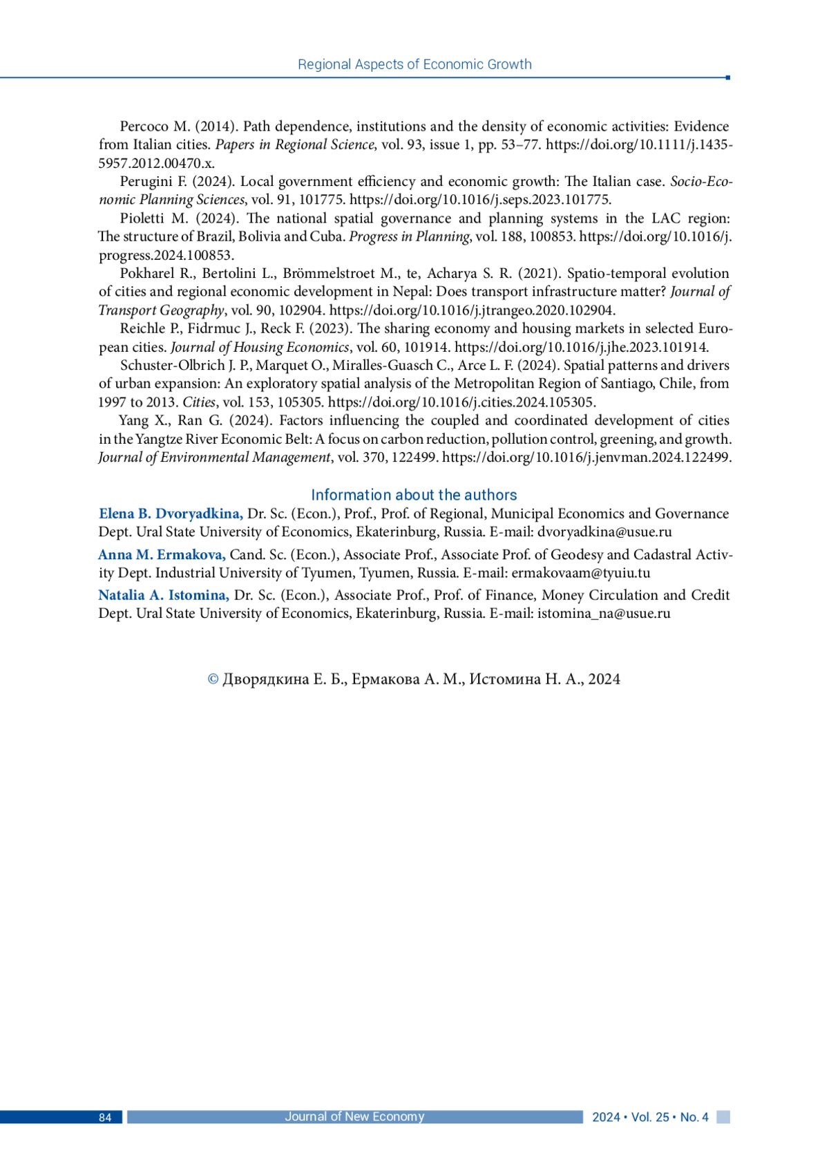 33. Buettner T., Holm-Hadulla F. (2013). City size and the demand for local public goods. Regional Science and Urban Economics, vol. 43, issue 1, pp. 16-21. DOI: 10.1016/j.regsciurbeco.2012.10.003