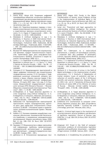 17. Капинус О. С. Цифровизация преступности и уголовное право / О.С. Капинус // Baikal Research Journal. - 2022. - Т. 13. - № 1. DOI: 10.17150/2411-6262.2022.13(1).22 EDN: NZNOMN