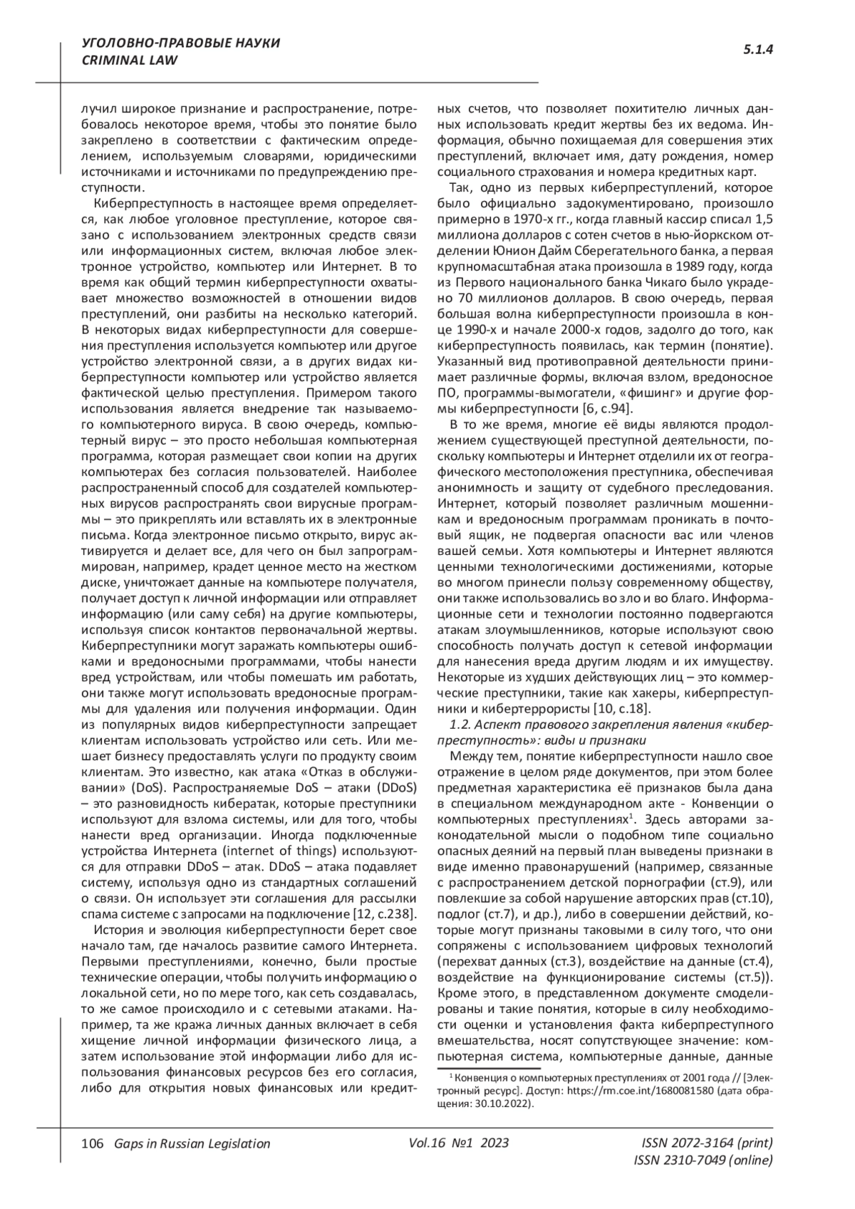 Kapinus O.S. Digitization of crime and criminal law / O.S. Kapinus // Baikal Research Journal. - 2022. - V. 13. - No. 1. DOI: 10.17150/2411-6262.2022.13(1).22 EDN: NZNOMN