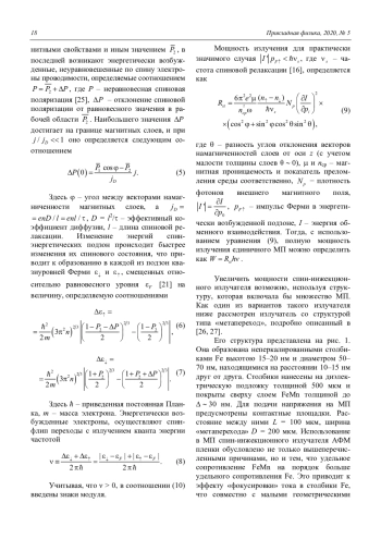 Цель работы – показать возможность возбуждения индуцированной (собственной) намагниченности в антиферромагнитной (АФМ) нанопленке магнитного перехода (МП), а также рассмотреть вопрос его практического применения при создании спининжекционных источников ТГц сигнала. Приведено физическое обоснование рассматриваемого процесса за счет скашивания подрешеток АФМ под действием спинполяризованного тока, инжектируемого из ферромагнитного (ФМ) слоя вследствие sd-обменного взаимодействия спинов электронов проводимости сd-электронами кристаллической решетки. Приведены соотношения для определения частоты и мощности излучаемого сигнала. На примере работы ТГц спин-инжекционного излучателя, использующего «метапереход» с МП ФМ-АФМ, показана практическая значимость рассматриваемого эффекта. Экспериментально показана нетепловая природа излучения в МП ФМ-АФМ на частотах 16 ТГц с уровнем мощности сотни мкВт, а также влияние на процессы в метапереходе внешнего магнитного поля