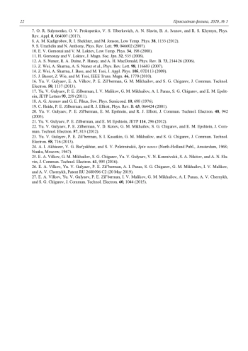 7. Sulymenko O. R., Prokopenko O. V., Tiberkevich V. S., Slavin A. N., Ivanov B. A., Khymyn R. S. // Phys. Rev. Appl. 2017. Vol. 8. P. 064007.
