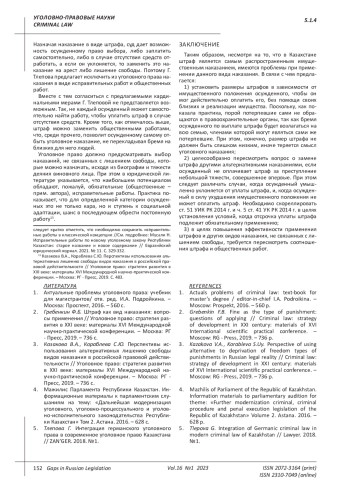 3. Казакова В.А., Кораблева С.Ю. Перспективы использования альтернативных лишению свободы видов наказания в российской правовой действительности // Уголовное право: стратегия развития в ХХI веке: материалы ХVI Международной научно-практической конференции. - Москва: РГ - Пресс, 2019. - 736 с. EDN: ZXTEJV