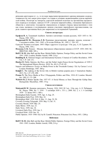 9. Knight C. The making of the Soviet Ally in British wartime popular press // Journalism Studies. 2013. No. 4. P. 476-490.