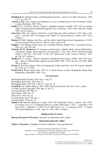 7. Hucker D. Public Opinion, the Press, and the Failed Anglo-Franco-Soviet Negotiations of 1939 // The International History Review. 2018. No. 40 (1). P. 65-85.