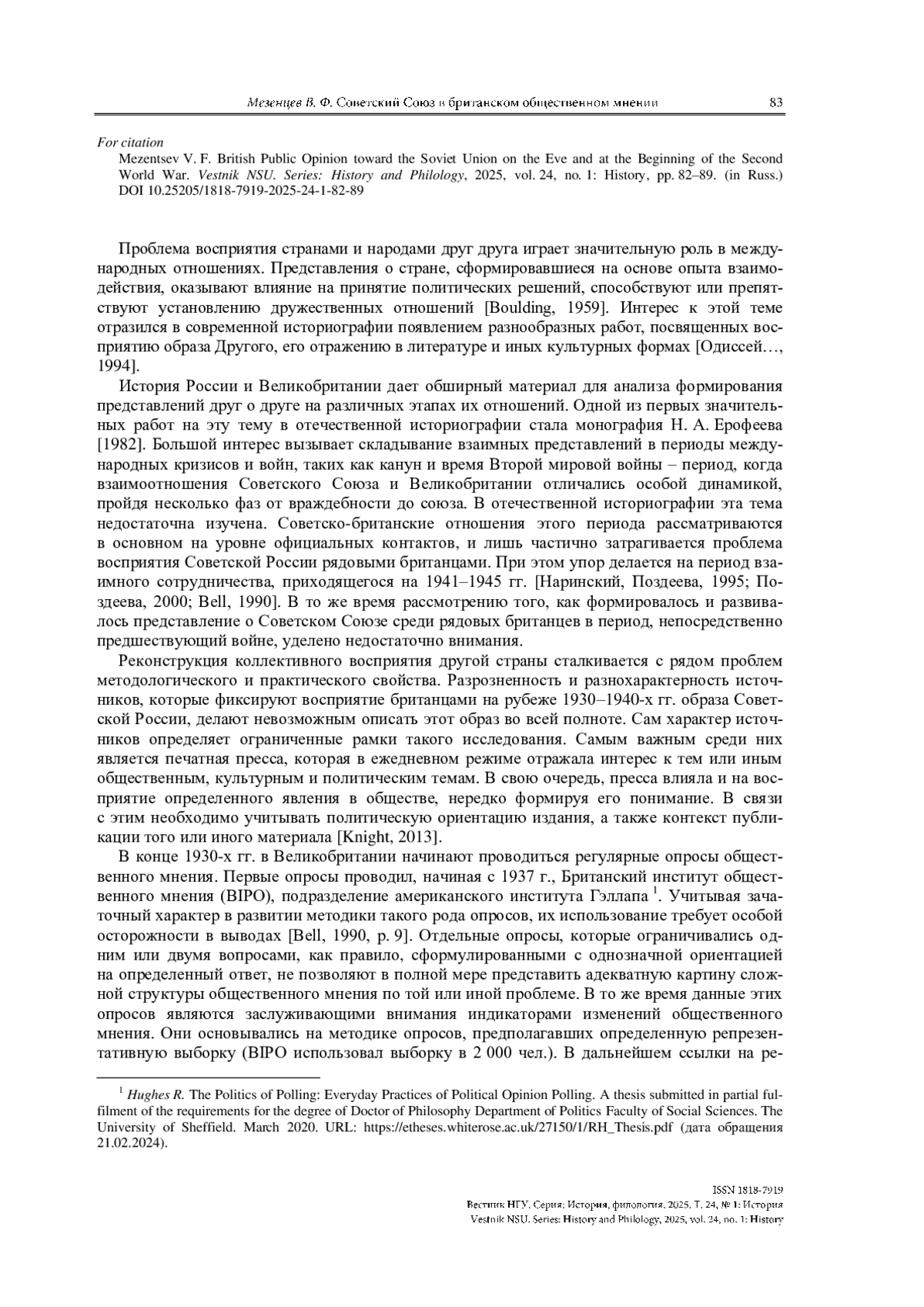 5. Bell P. M. H. John Bull and the Bear: British Public Opinion, Foreign Policy and the Soviet Union 1941-1945. London: Hodder Arnold, 1990. 214 p.