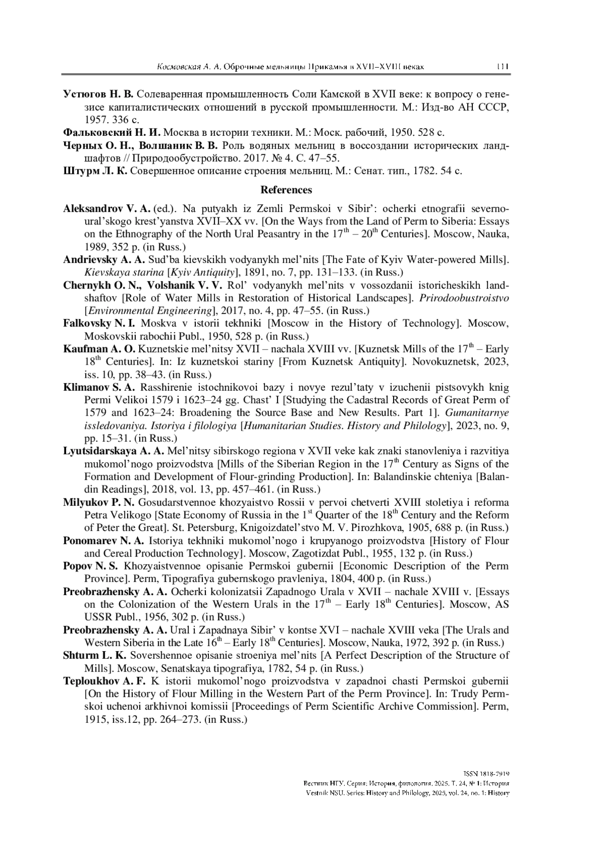 4. Кауфман А. О. Кузнецкие мельницы XVII - начала XVIII вв. // Из кузнецкой старины. Новокузнецк, 2023. Вып. 10. С. 38-43.