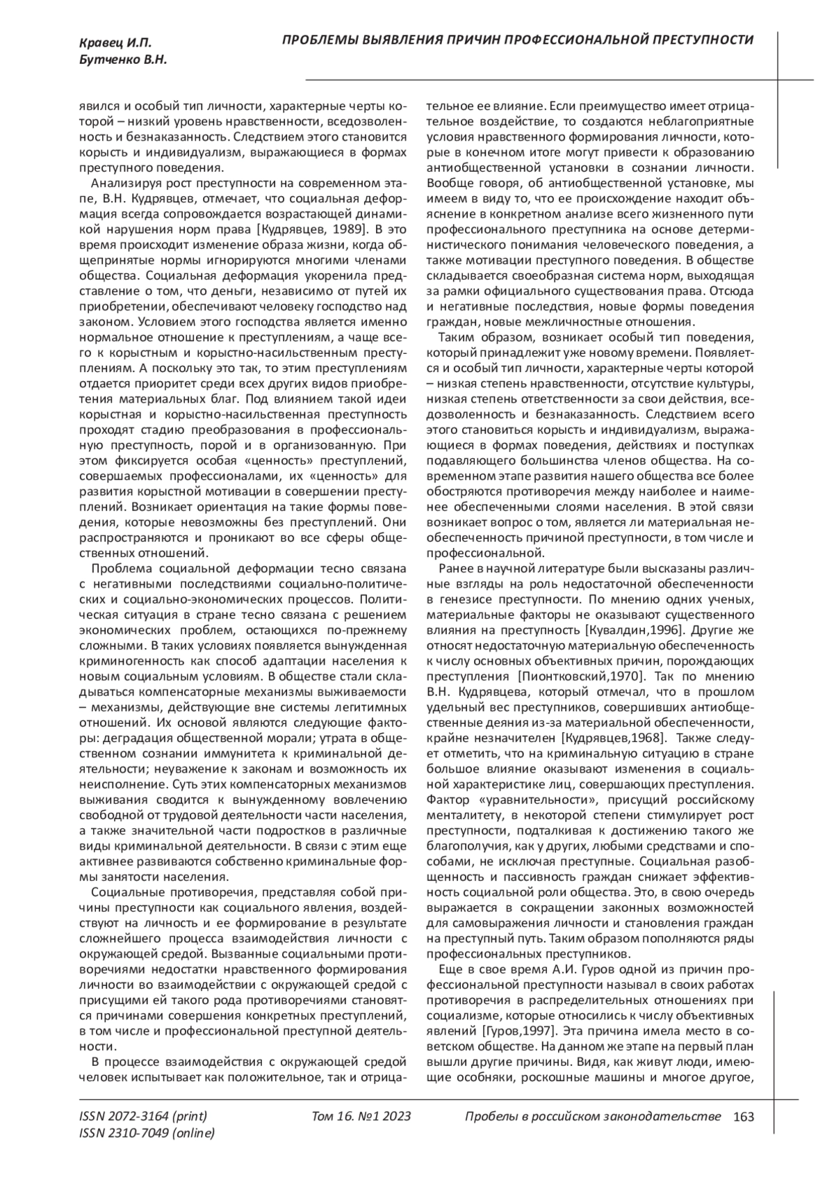 Kravets I.P., (2022), Problems of special measures to prevent professional crime. Gaps in Russian legislation, 2: 134-143. EDN: PZUKUF